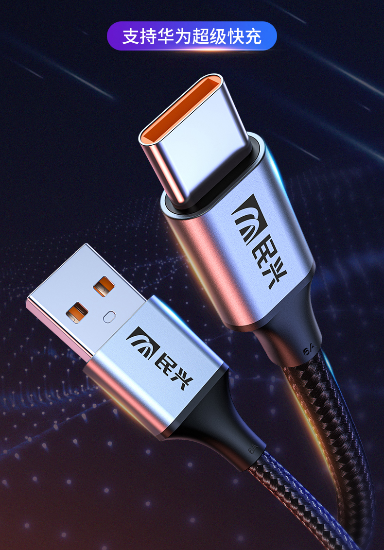 Type-C數據線,采用了國家專利端子頭,安全不傷機。