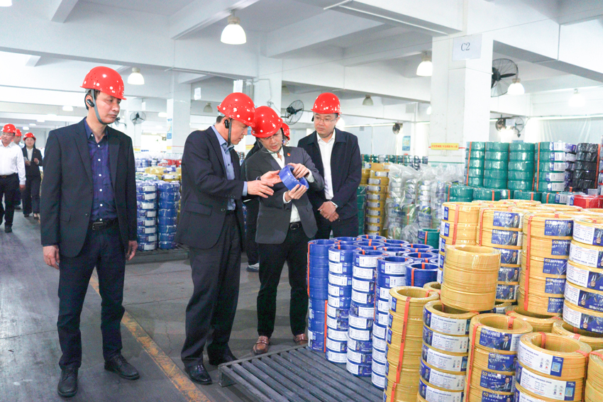 隨后,調研指導組張威等領導一行在楊彥等的陪同下,先后前往VR彩票自動化電線生產車間、電線電纜成品倉、技術研發中心等開展調研。