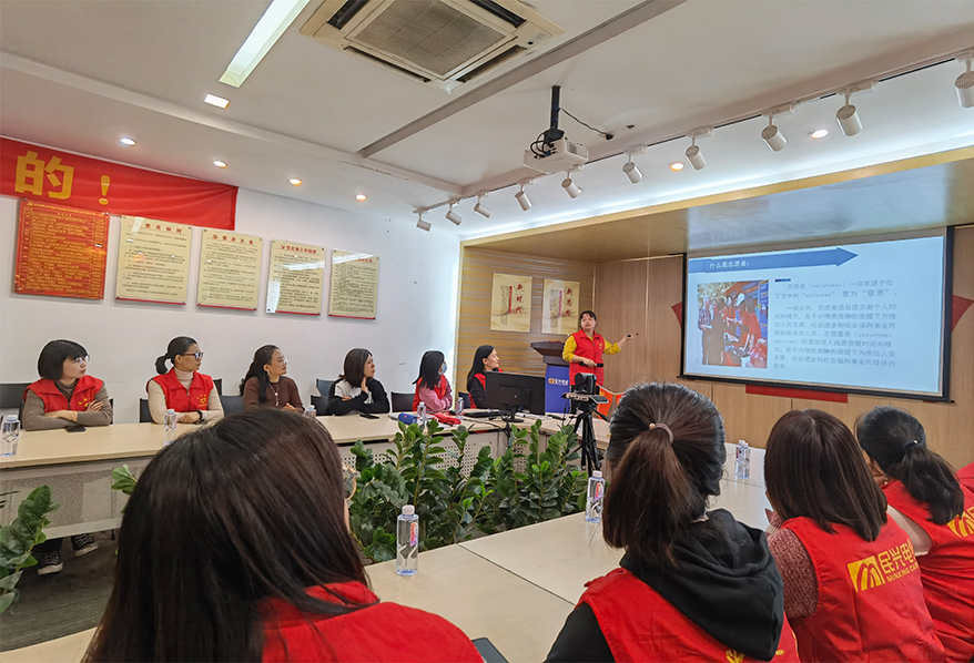 隨后,志愿活動管理員馮敏為大家介紹了志愿者方面的知識,她圍繞志愿者的概念、志愿者精神、志愿服務過程中應當注意的事項,以及手機端“i志愿”小程序的各項功能等進行了細致地講解,以提高志愿服務質量和水平,進一步發揚“奉獻、友愛、互助、進步”的志愿者精神。培訓結束后,志愿者代表葉子霖、張琪、邱純真分享了各自參與志愿者活動的體會和收獲,他們積極投身于志愿活動的精神贏得了在場志愿者的熱烈掌聲。